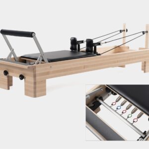 - The Stretch Studio Reformer is also available for upcharge. The frame on Stretch Studio Reformer is 6″ longer than the Standard Studio Reformer. Please call us at 916-388-2838 or email us for more information, and to order premium colors and woods.